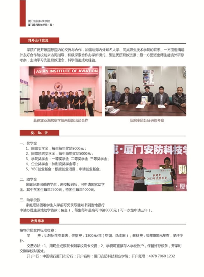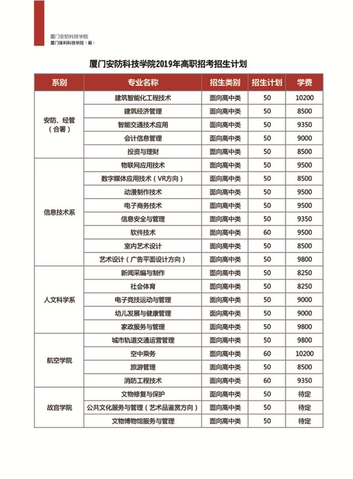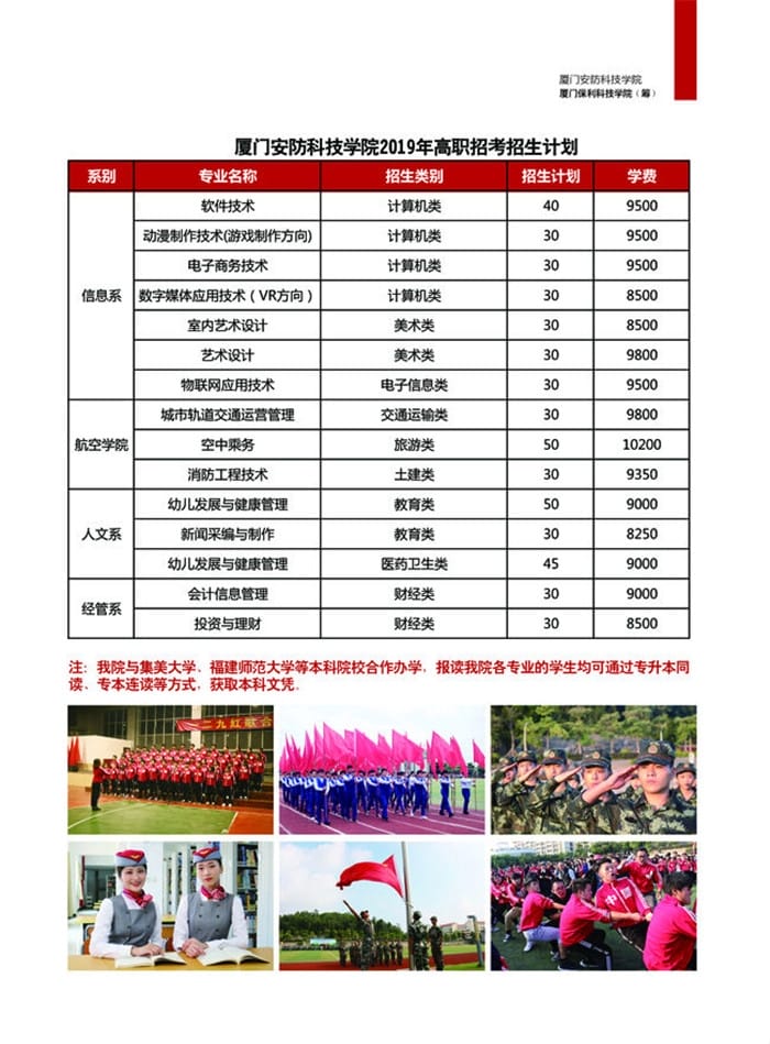 2019年厦门安防科技职业学院春季高职招考招生简章